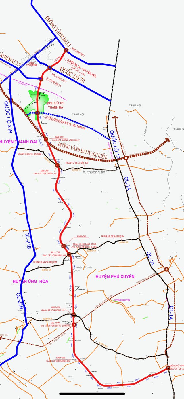 Tuyến Đường Phía Nam đường màu đỏ bắt đầu từ Nguyễn Xiển kết thúc đoạn nối đi cầu giẽ Ninh Bình