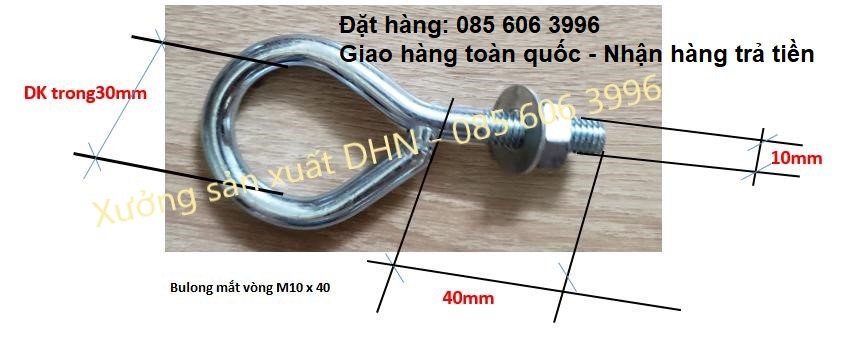 Bu Lông mắt vòng, Bu Lông khoen tròn M10x40 giá rẻ