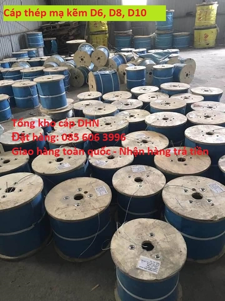 Tổng kho cáp thép Đông hà nội chuyên XNK bán buôn, bán lẻ dây cáp thép mạ kẽm D6, D8, D10, (hay còn gọi là dây cáp lụa)... cho các dự án xây dựng, nhà xưởng, nhà công nghiệp, là nhà cung cấp cáp cho các dự án vincom gia lâm, vin tây mỗ, các tổng thầu Delta, Riscon,..các nhà thầu phụ,...