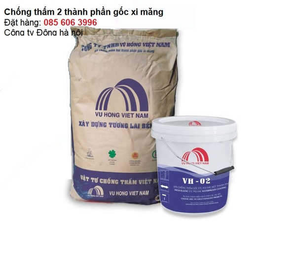 Vật liệu chống thấm 2 thành phần gốc xi măng ( VH02) : là vữa chống thấm gốc xi măng polymer cải tiến, 2 thành phần. Sản phẩm được thi công lên bề mặt vữa và bê
