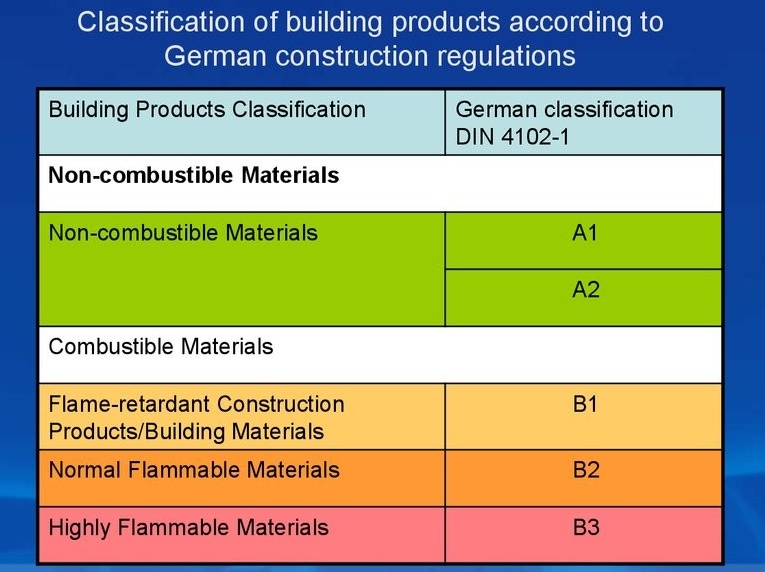 Theo bảng trên thì DIN 4102-1 phân ra làm hai (02) loại vật liệu: