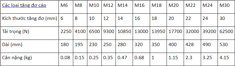 Thông số kỹ thuật (Quy cách) của tăng đơ cáp